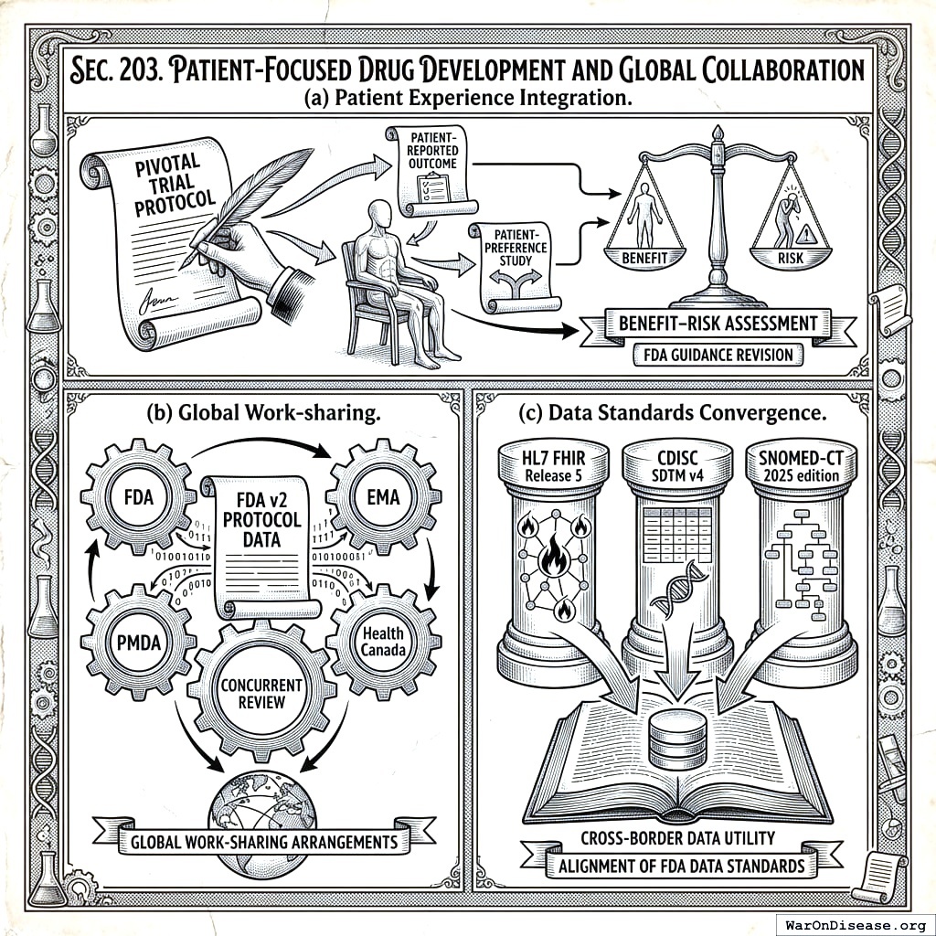 SEC. 203. PATIENT‑FOCUSED DRUG DEVELOPMENT AND GLOBAL COLLABORATION