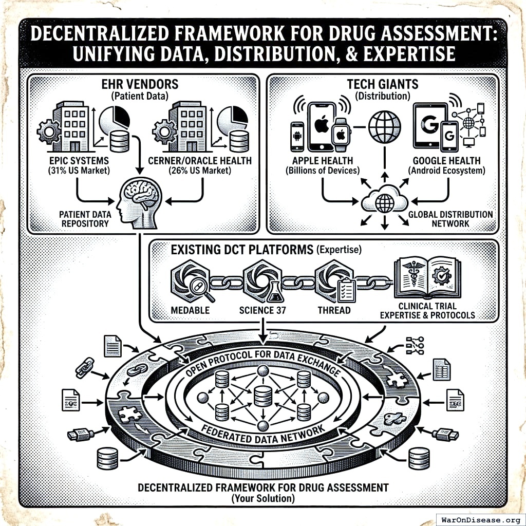 Multiple companies have already built decentralized clinical trial platforms. They’ve collectively raised hundreds of millions in venture funding161. They’re good at it. They have users. They have infrastructure. Why compete? Partner.